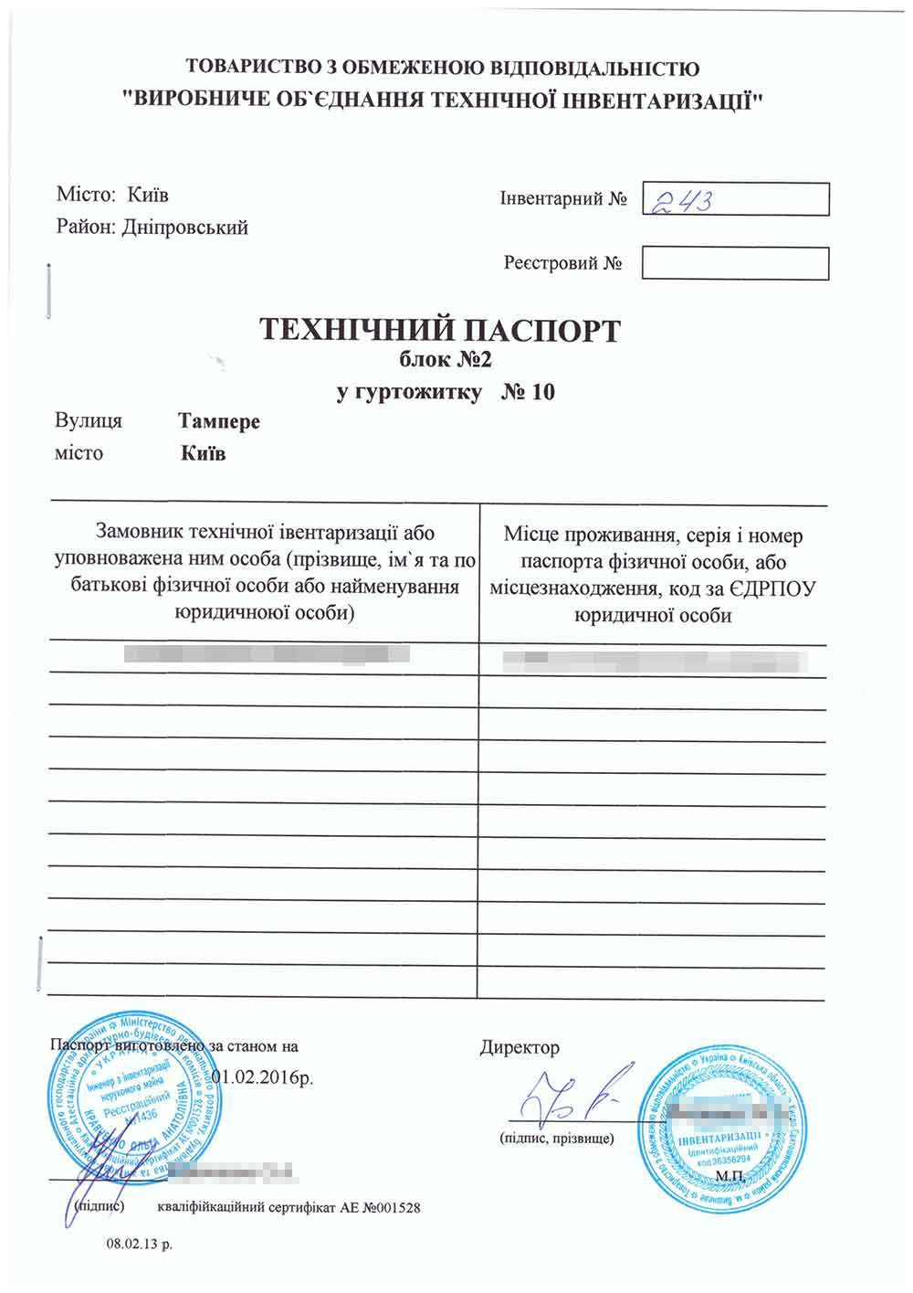 Техпаспорт на квартиру (жилой дом, многоквартирный дом, жилое помещение, здание, объект, земельный участок) БТИ Киев