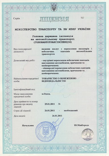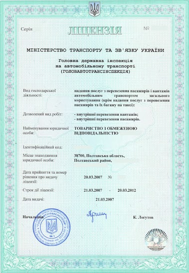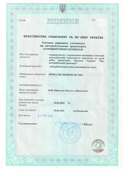 Согласно законодательству Украины транспортные услуги по внутренним и международным перевозкам на автомобильном транспорте пассажиров и грузов, а также частный извоз (такси), подлежат лицензированию.