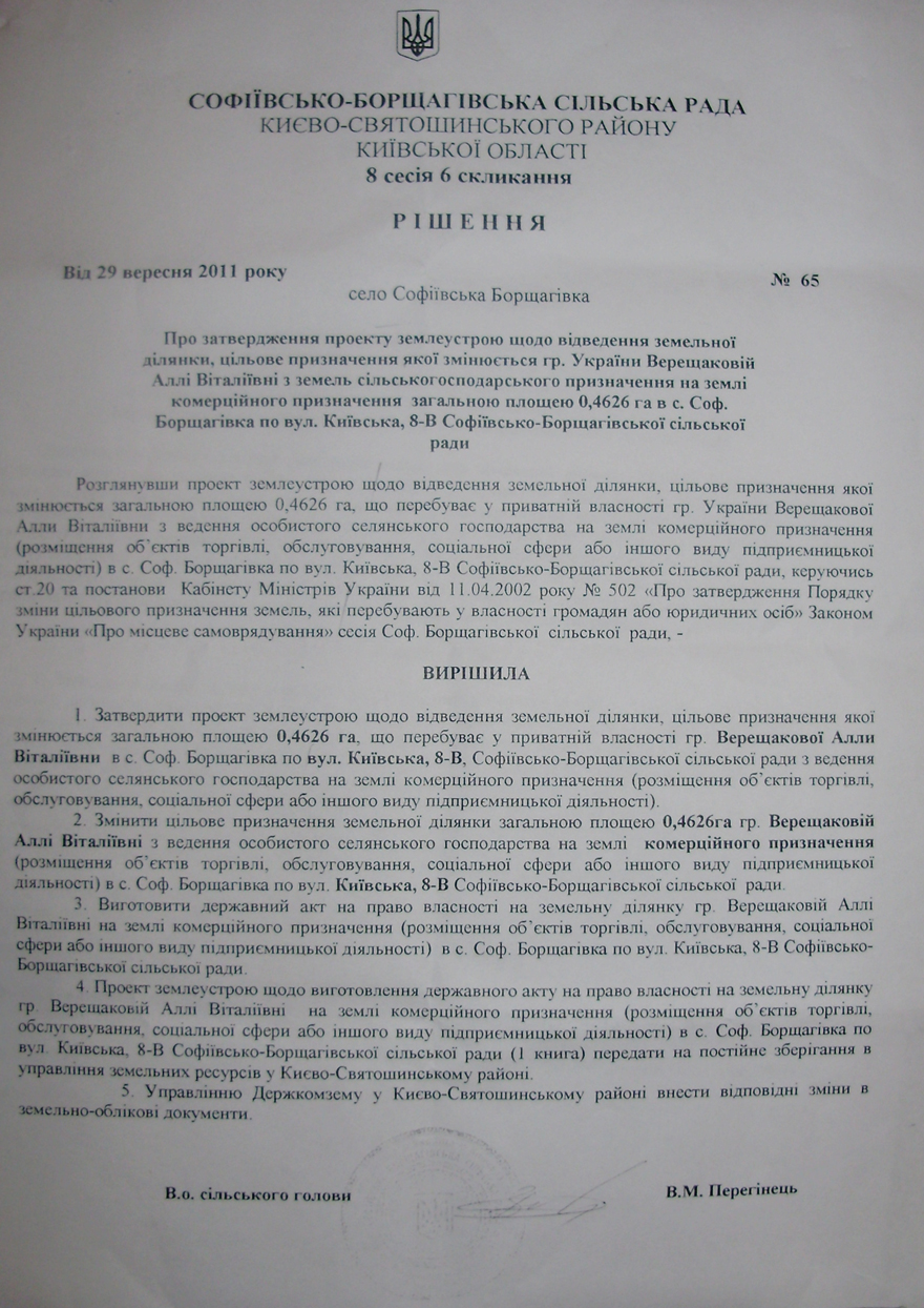 При получении положительного заключения документы подаются в соответствующий орган для принятия решения об изменении целевого назначения участка и выдачи государственного акта с новым целевым назначением.