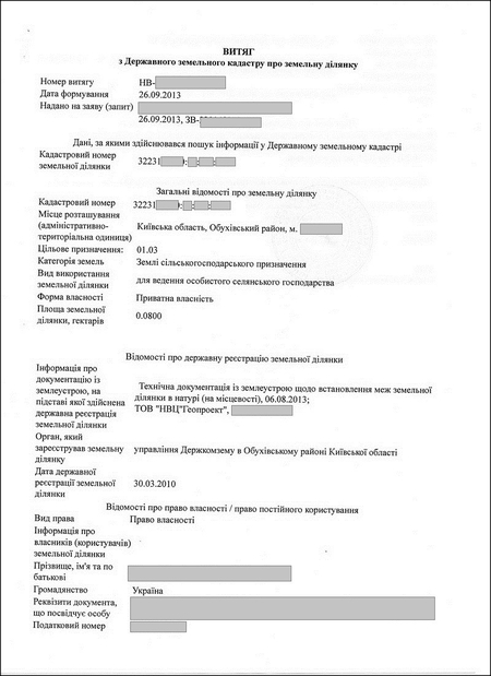 Со вступлением в силу Закона Украины «Про государственный земельный кадастр» для подтверждения права собственности на землю владельцу необходимо предъявить Выписку из государственного земельного кадастра. Только при наличии такой выписки нотариусам разрешено заверять сделки по отчуждению земельных участков или при оформлении наследства. Выписка из земельного кадастра необходима при внесении данных в Государственный реестр вещных прав на недвижимое имущество. Из нее можно узнать о наличии ограничений в использовании земли. Выписка может быть предъявлена владельцем вероятному покупателю или арендатору как подтверждение права собственности.