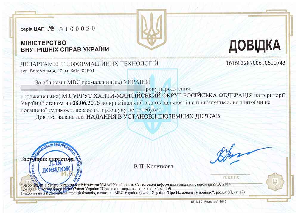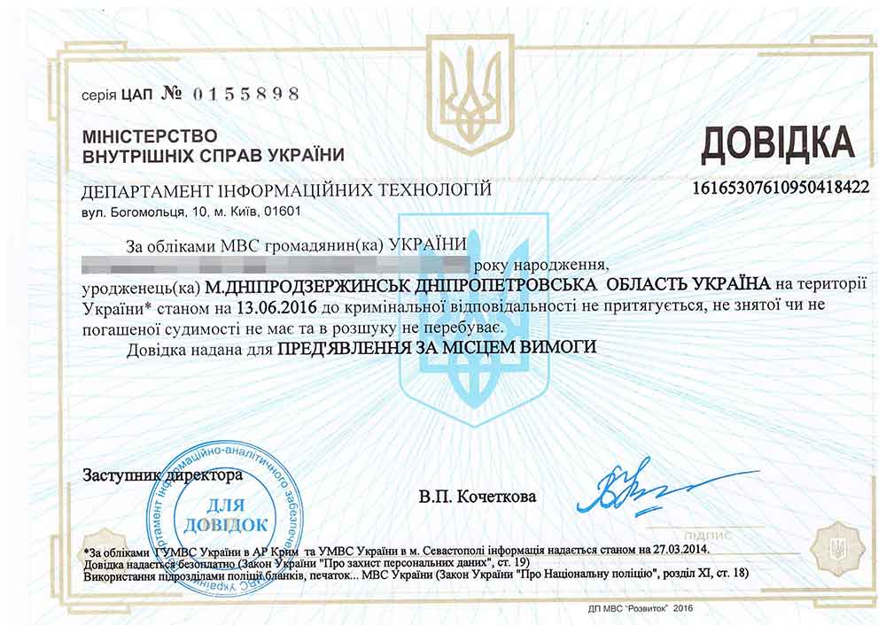 Успешное получение справки об отсутствии судимости в большинстве случаев зависит от правильно заполненных документов, которые подаются в органы внутренних дел. Подача анкетных данных имеет ряд особенностей, которые незнакомы человеку, в первый раз пришедшему за справкой. Так, например, в анкете необходимо указывать все предыдущие фамилии и имена, если они менялись, причем, обязательно на украинском языке, а иностранным гражданам нужно предоставить правильное написание их имени на украинском языке. Существует еще множество нюансов при заполнении документов.