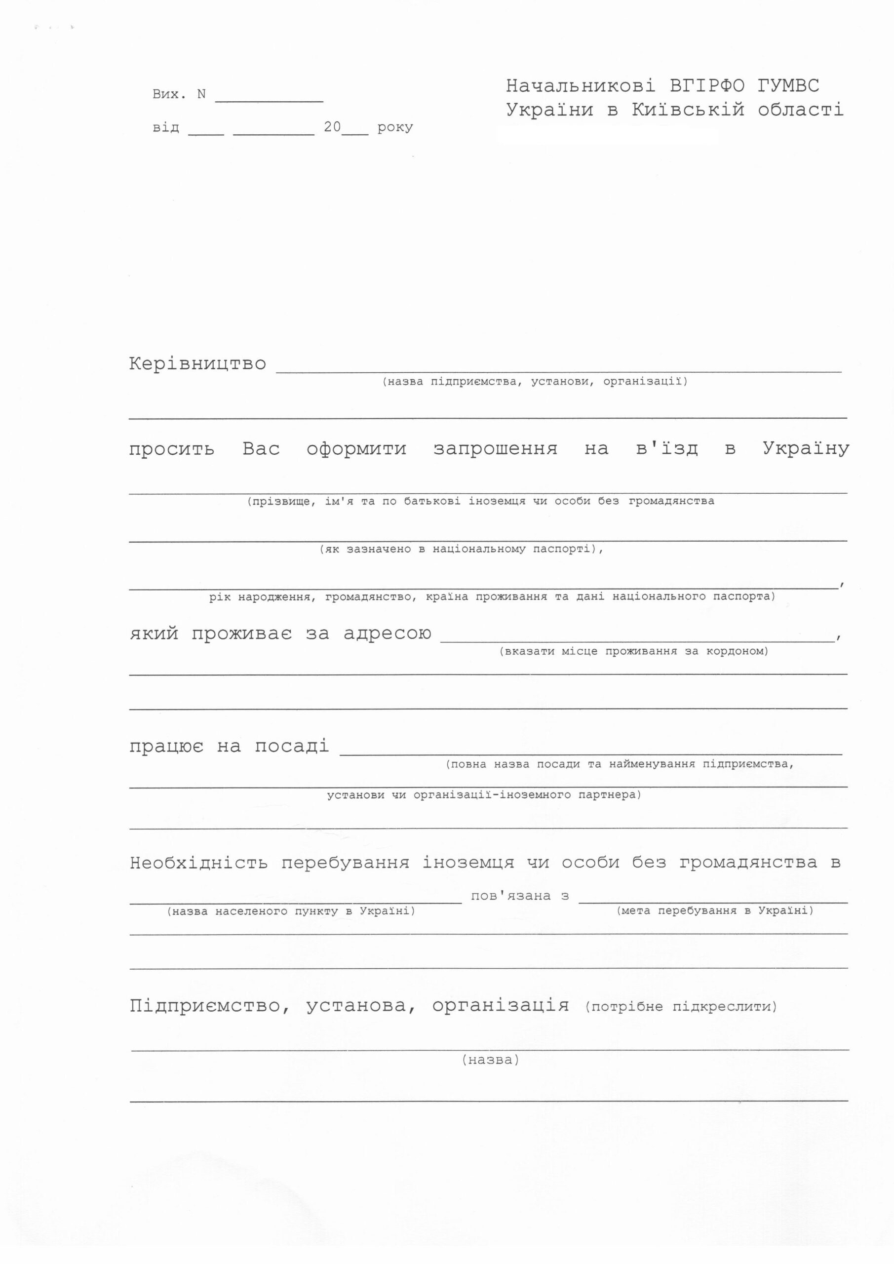Wzór wniosku o przedłużenie okresu pobytu na Ukrainie