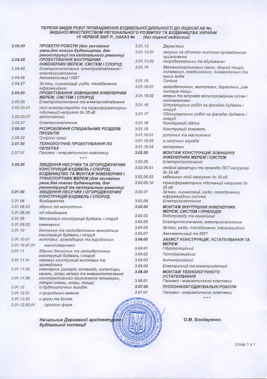Ліцензування будівельної діяльності необхідне для виконання наступних видів робіт: