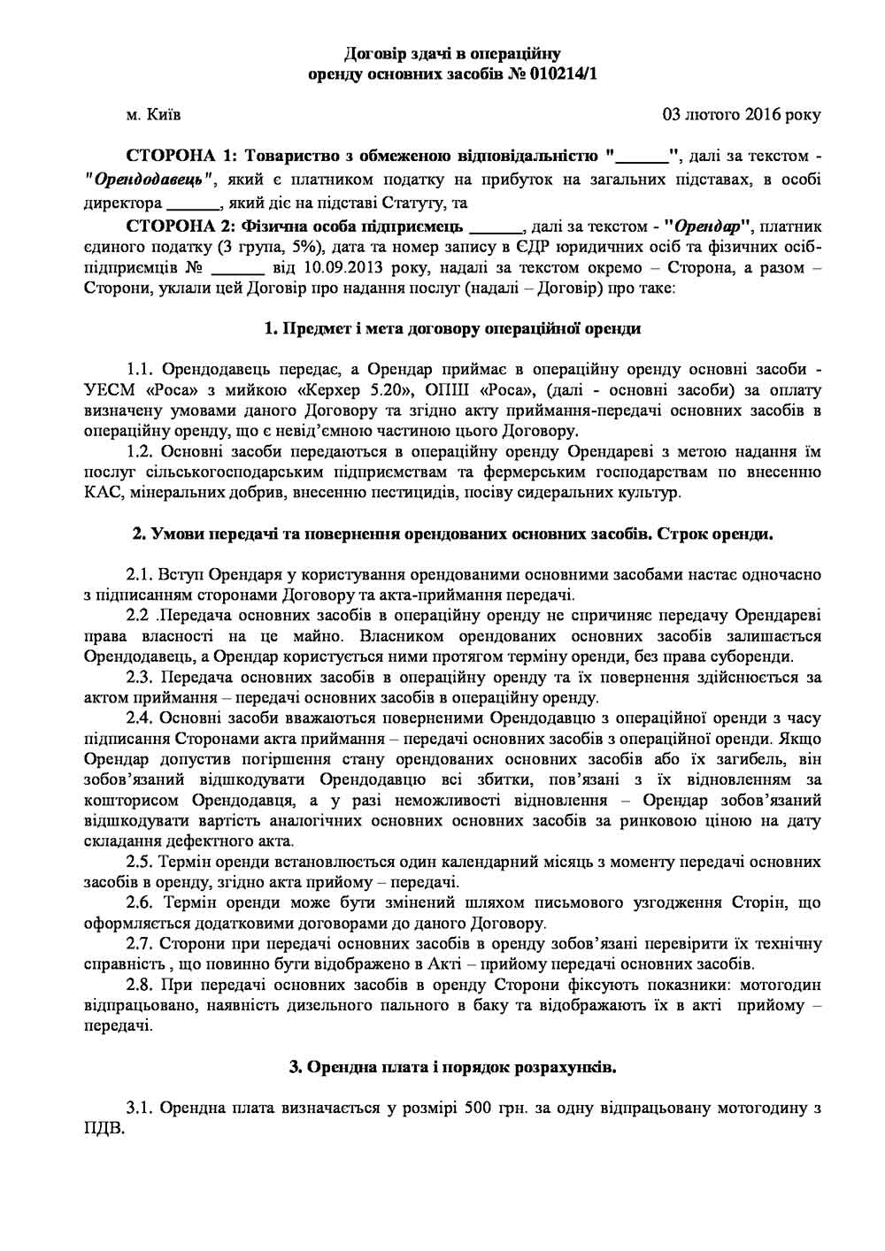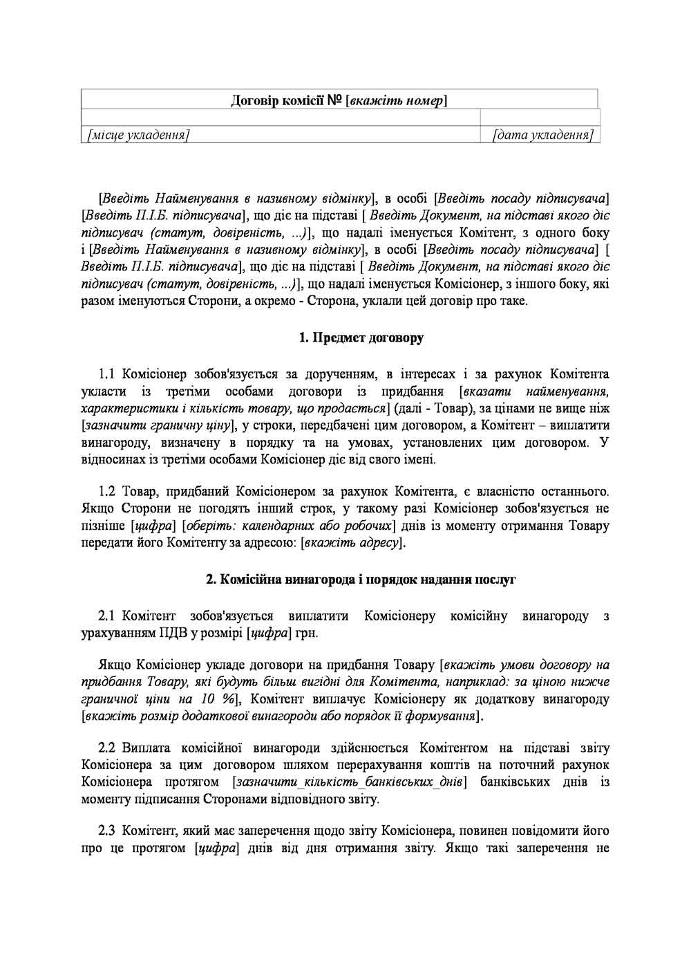 • шаблонний договір купівлі-продажу для підприємства або ФОП, основна діяльність якого полягає в продажі яких-небудь розповсюджених продуктів;
