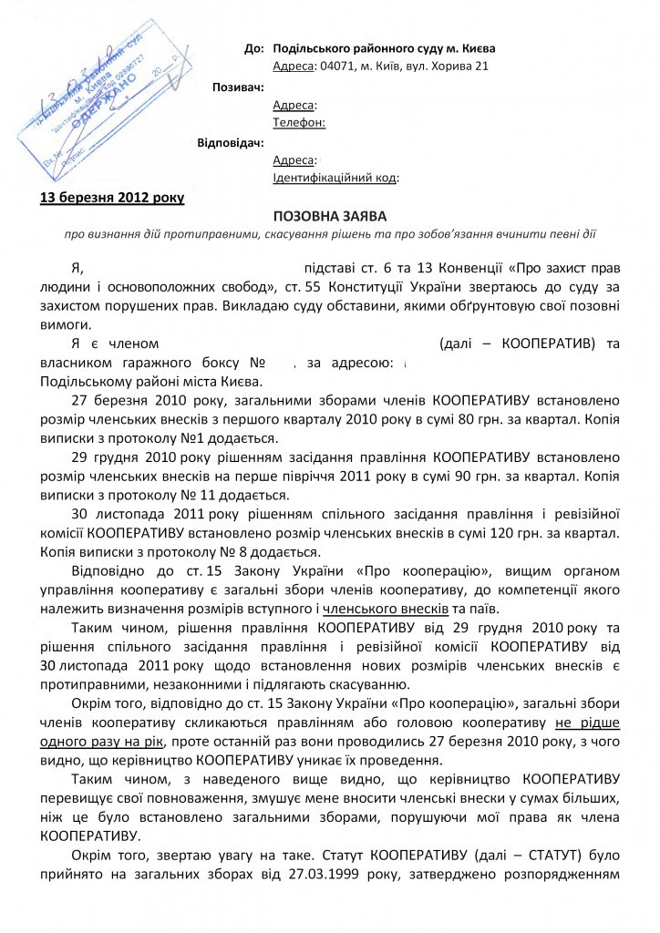 документ – зразок – ПОЗОВНА ЗАЯВА про скасування податкового повідомлення-рішення